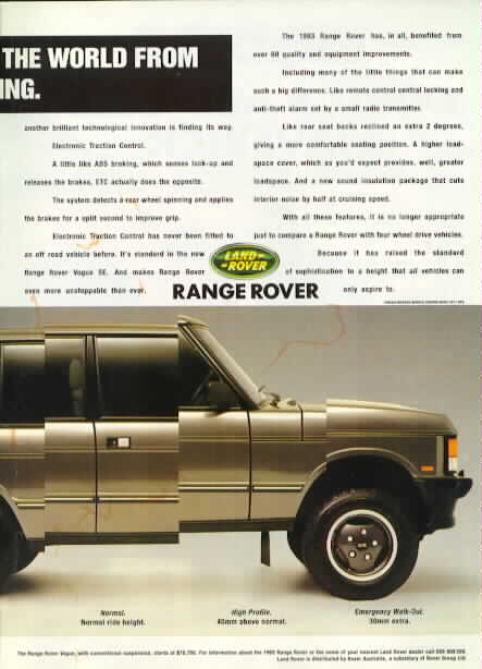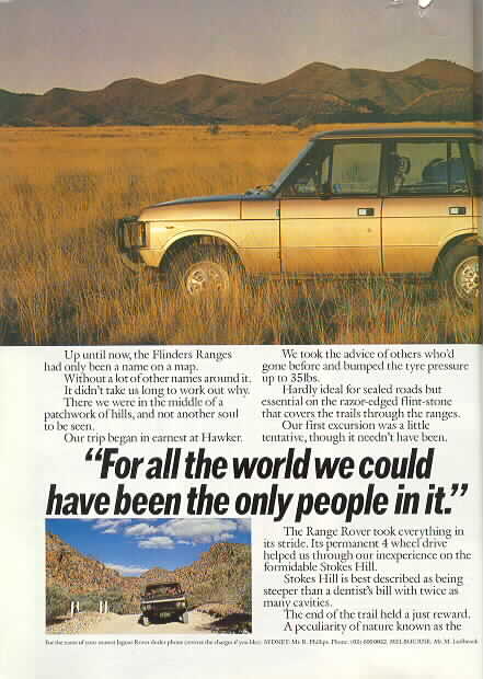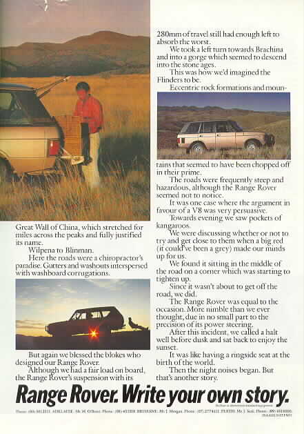 Above Right: (41Kb and 43Kb) "Range Rover. Write your own story" Two page advertisement from Australian Off-Road Year 1983/4. Click on each panel to see larger versions of each