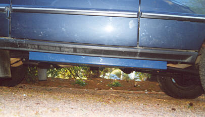Left & Right: (25Kb each) The Range Rover has a fuel capacity of only 80 litres - far less than the typical large Japanese 4WD and, combined with the thirst of the V8, range is somewhat limited at about 400km - so I fitted an aftermarket auxiliary fuel tank of 40 litres capacity under the left hand sill.