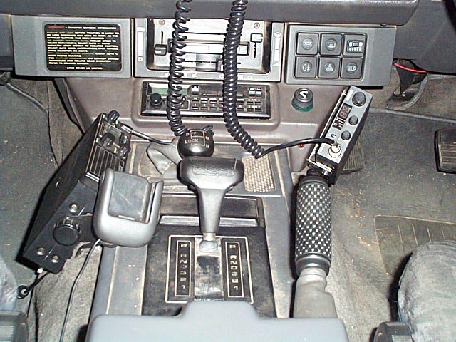 Right: (25Kb) The Range Rover is somewhat bereft of places to fit CBs. In Australia, one really needs two radios, one on 27MHz AM and the other on the 477MHz UHF FM band. (Recently Uniden have released a radio that combines both into one compact unit.) The FM sets provide a lot of advantages apart from clearer reception, some have selcall, scanning (open and closed group), etc. But where to fit them?