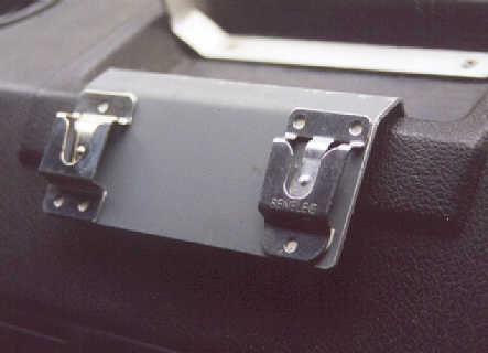 Putting the microphones somewhere is difficult so I made up this bracket which is screwed to the existing holes in the tray on top of the dash. No holes need to be drilled in the dashboard. (I tried double sided tape but the mike clips kept falling off in the sun). The bracket in the background is to hold the very old GPS display I had at the time.