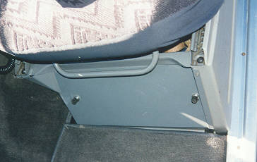 Left: (15Kb/19Kb) The early Rangies have open seat bases with nothing under them except the ECU (which has been relocated on my car). So they are useful for storage. But who wants it all showing?