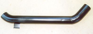 (10Kb) The right-angled bracket by which it is attached to the windscreen pillar is a piece of 50mm (2") x 2mm thick square steel tubing which was sliced diagonally to give two angled brackets, only one of which was used. It is welded to the round pipe and pop-rivetted to the screen pillar. I temporarily fitted the snorkel in position before making the bracket. To get the position exactly aligned, I marked the bracket in-situ, trimmed it to size and then superglued it in place. I reinforced the superglue with baking powder but you could use micro-balloons (both are common techniques for aeromodellers). I then carefully removed the snorkel so as not to break the superglued joint. Finally, I welded the bracket on. The superglue and baking powder soon burned off. The image above right (9Kb) shows the shape of the steel tubing.