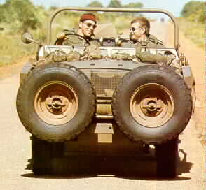 Left (27Kb) and Right (12Kb): Note the similarity to the British SAS "Pink Panthers" The most obvious difference is the spare wheel placement and the lack of the splayed smoke grenade launch tubes. Weren't they meant to be driven at night?